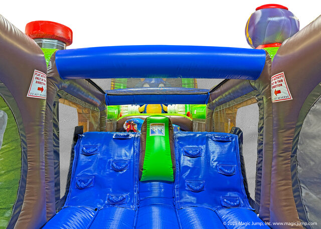 Perfect for both dry and water play, this premium obstacle course is made with Magic Jump’s non-slip material and vibrant digital artwork. Rent it your way: as a full 50’ course, a water version, or smaller 25’ units including slides or combos. Ideal for birthdays, school events, or any party where excitement and adventure are on the agenda!